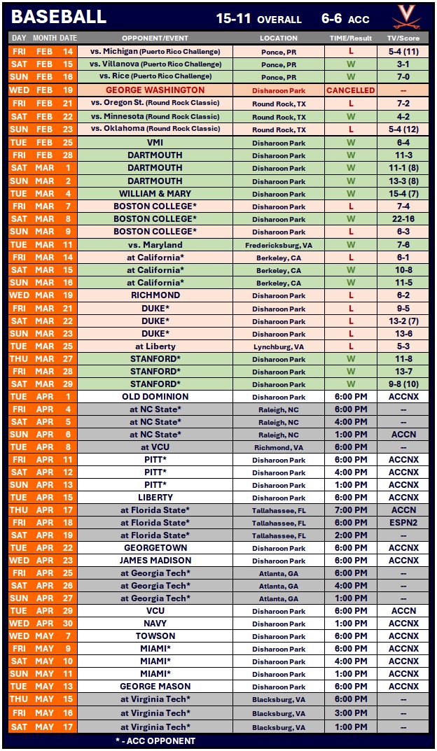 — Virginia Baseball (@UVABaseball) March 29, 2025