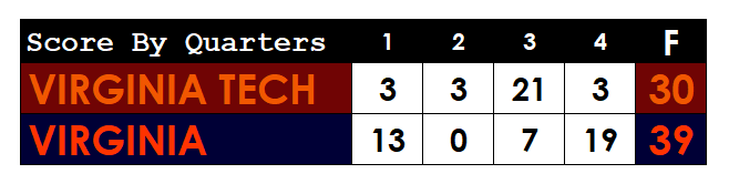 The Streak Is Over: Virginia Defeats The Hokies, 39-30