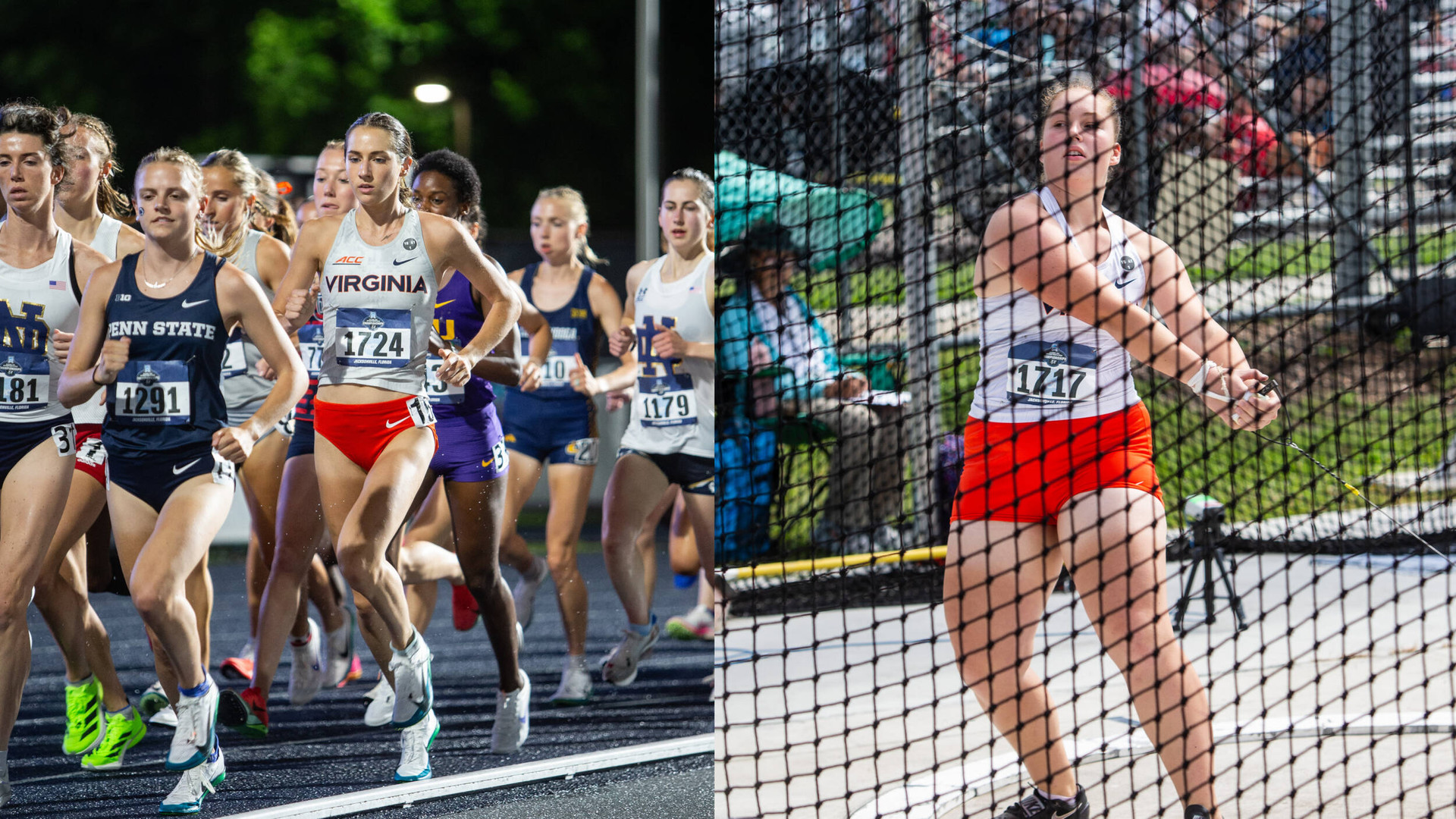 The Virginia women’s track and field program kickstarted competition on the women’s opening day at the NCAA East Preliminary round at Hodges Stadium in Jacksonville on Thursday, as Annika Kelly and Jenny Schilling punched their tickets to the NCAA Outdoor Championships in the hammer throw and 10,000-meters while Margot Appleton and Stella Kermes advanced to the quarterfinals in the 1500-meters.