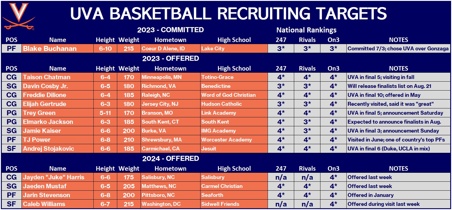 A pair of Virginia basketball recruiting targets will be announcing their college choices this weekend.
