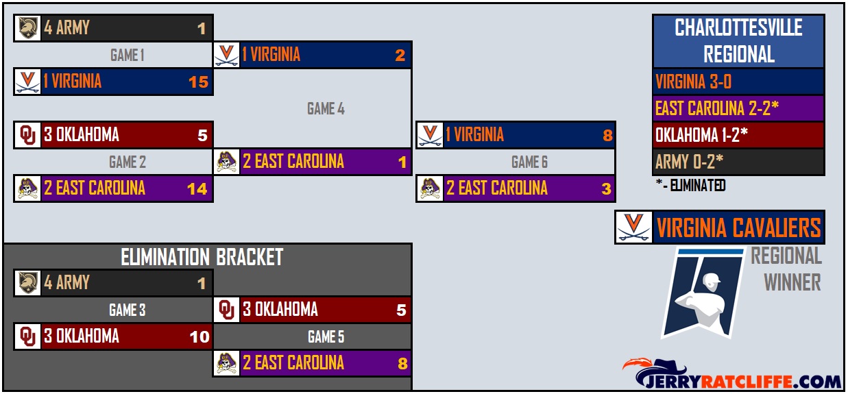 - The Cavaliers have faced East Carolina in regional action five times, the most against any other opponent. UVA holds a 3-2 edge in postseason action against ECU and a 33-22 overall mark against the Pirates.