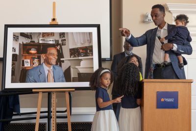 Surrounding himself with those dear to him for the portrait unveiling, Sampson capsulized his life when he called them up on stage.