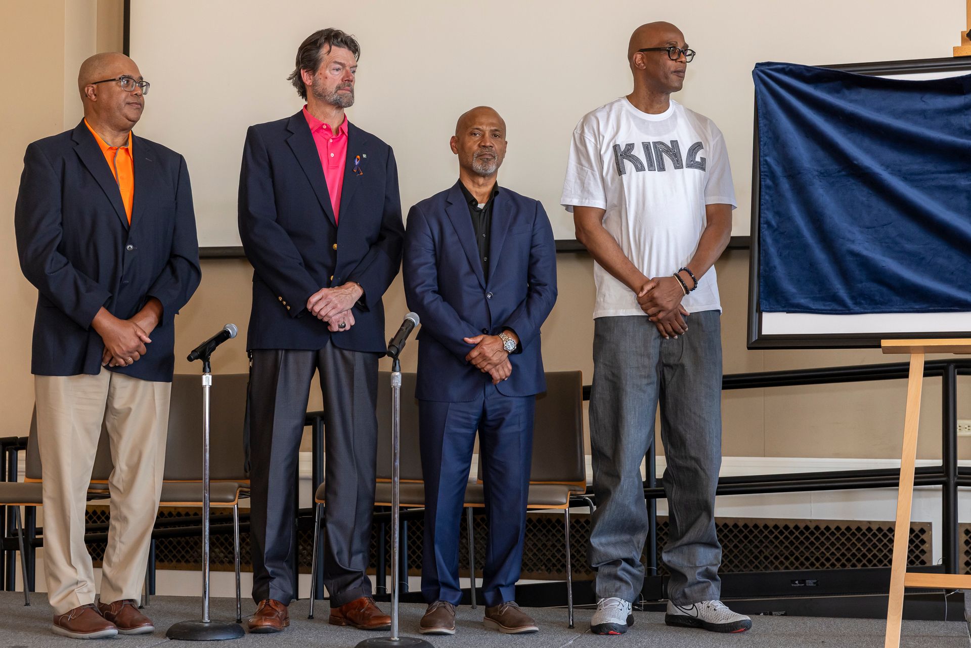 Surrounding himself with those dear to him for the portrait unveiling, Sampson capsulized his life when he called them up on stage.