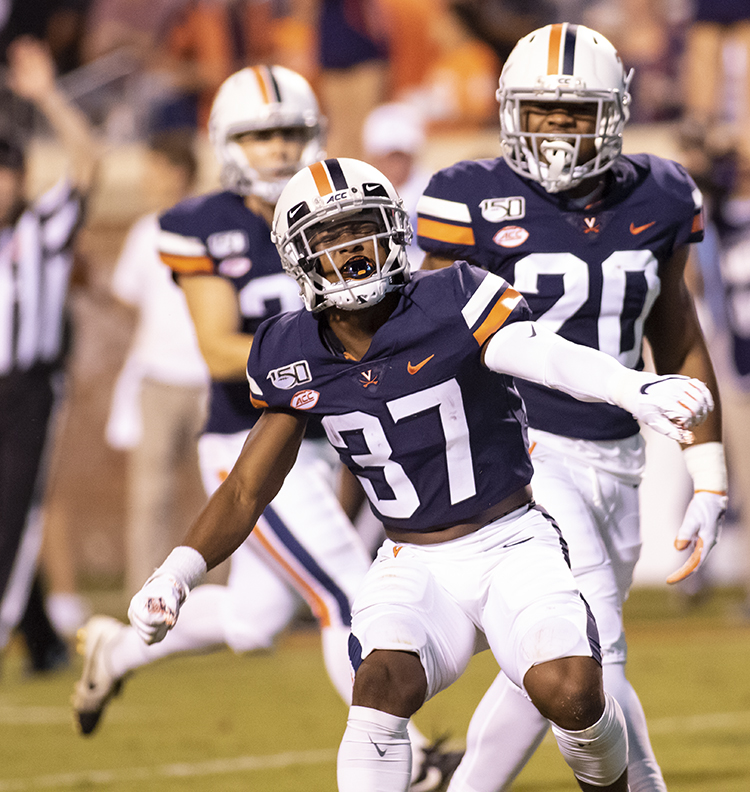 Perris Jones of UVA (37) shows his excitement after making a stop in the third period (Photo by John Markon).
