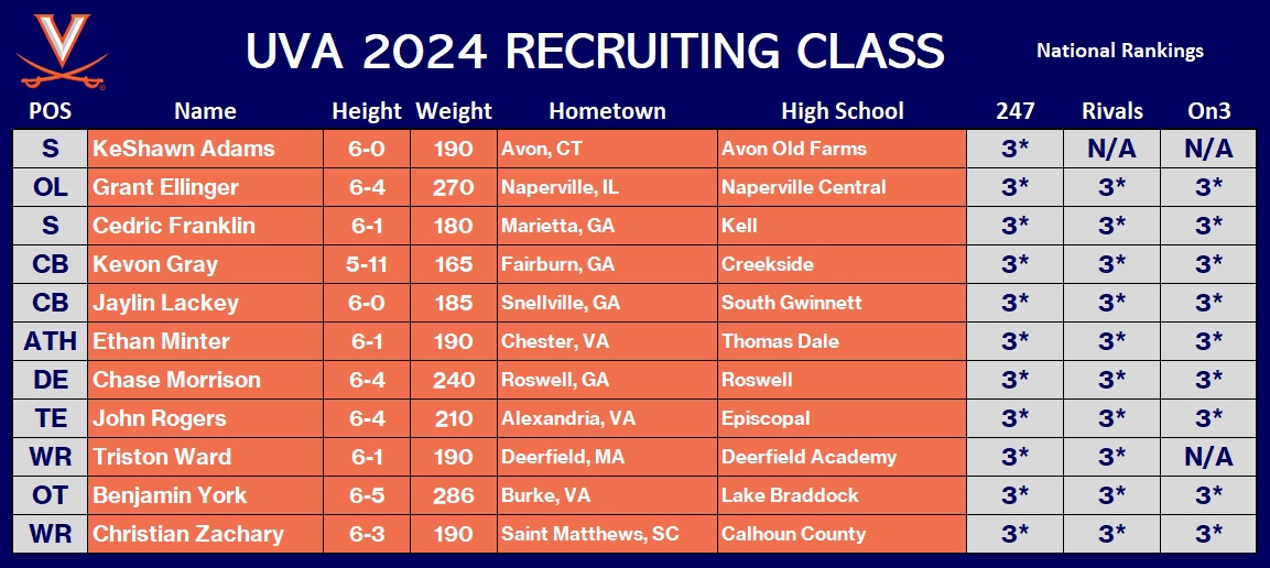 He was UVA’s second commit of the day, joining safety KeShawn Adams, a 3-star safety from Connecticut. On Friday, 3-star wide receiver Triston Ward committed to the Cavaliers.