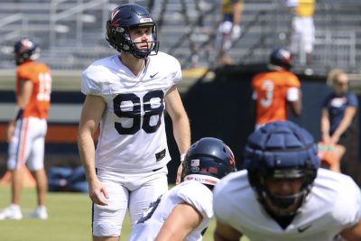 After returning to UVA in 2022 and entering the Darden School’s MBA program, he had connected with the football team’s special teams analyst, Drew Meyer, a former All-Big Ten punter from Wisconsin, about trying out for first-year coach Tony Elliott’s team. Because of what Ganyard described as a weird NCAA rule, his collegiate athletic eligibility was frozen when he entered the military, unfrozen when he retired.