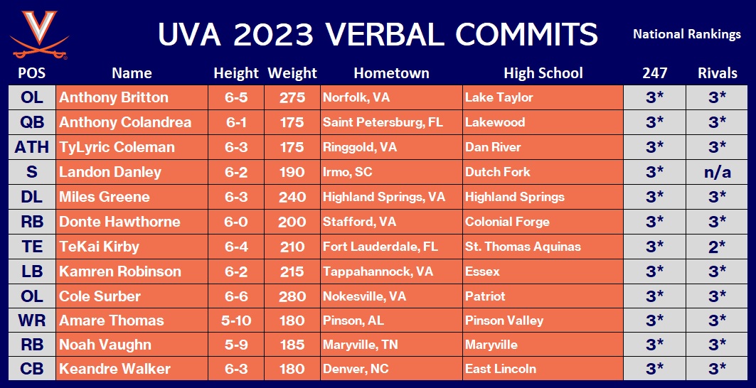 Currently sitting at No. 13 in the 14-team ACC football team recruiting rankings, Virginia could use some good news on that front and got it Thursday when a 3-star defensive back from South Carolina announced his commitment to the Cavaliers.
