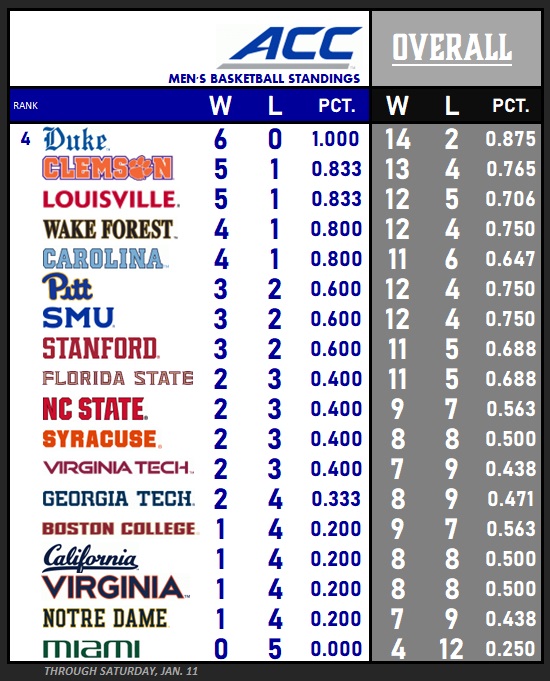 - Virginia fell to 8-8 overall, 1-4 ACC