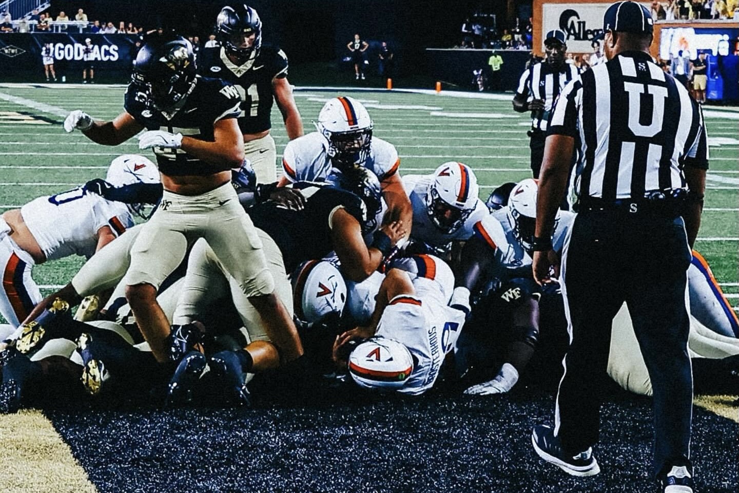 After a big stop by Chico Bennett a couple plays earlier, Trey McDonald — filling in for injured starting linebacker Kam Robinson — took down Wake’s Hank Bachmeier with the team’s sixth quarterback sack of the evening to turn the ball over on downs, and the Cavalier offense took control with 7:20 to play at its own 44.