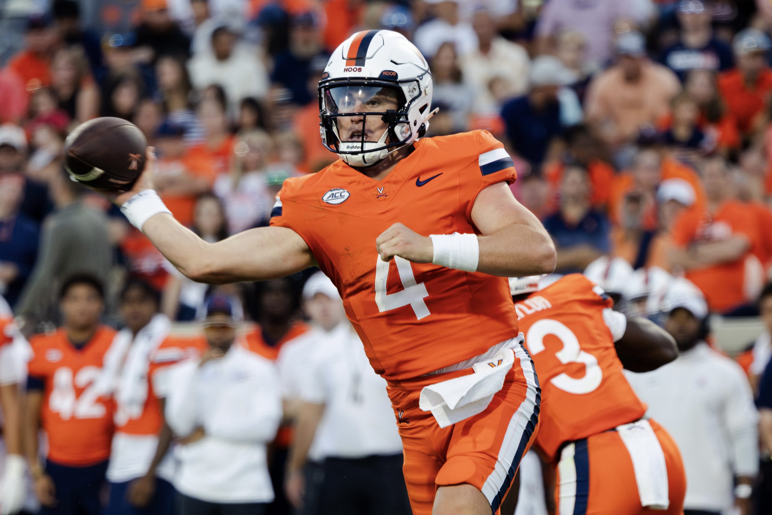 He was replaced at quarterback by redshirt freshman Daniel Kaelin, a transfer from Nebraska. Tailback J’Mari Taylor scored his second touchdown of the night on the play after Morris’ injury, putting Virginia up 35-0 with 10:41 to play in the third quarter.