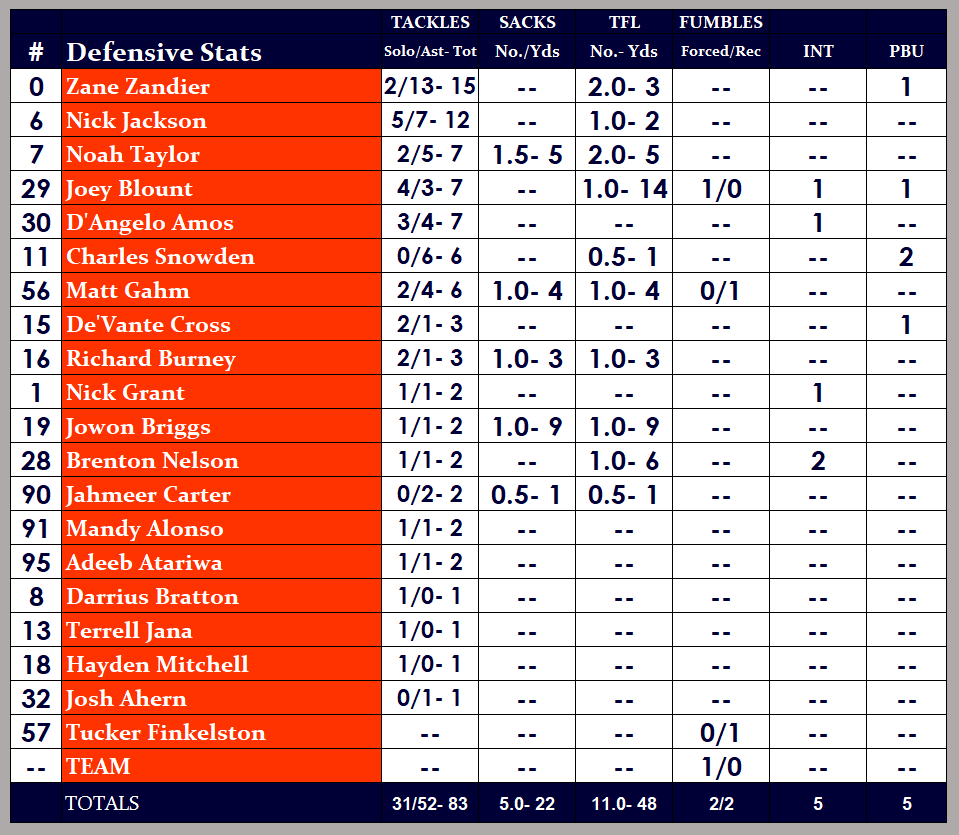 - No. 2 nationally in rushing defense after giving up only 56 yards on the ground.