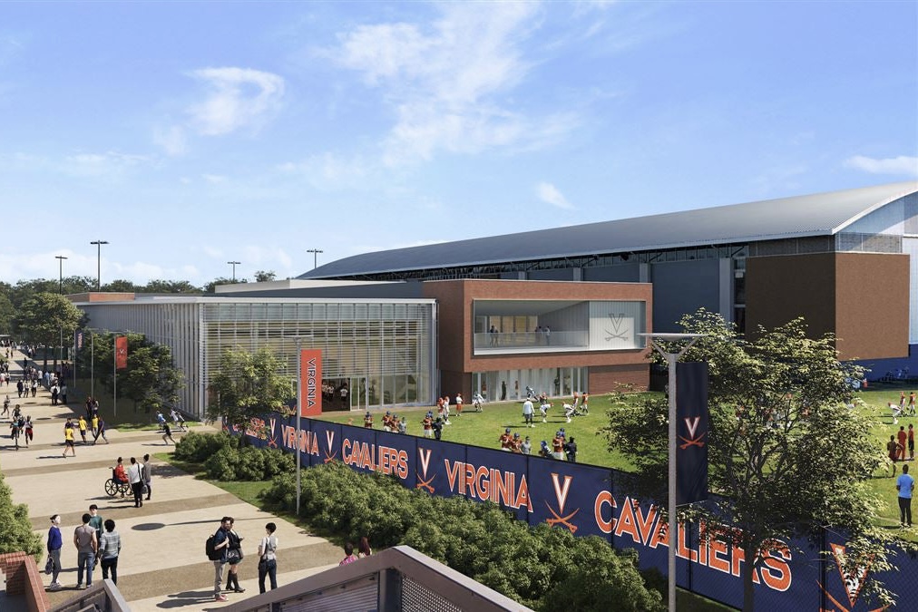 While the football complex is set to open next spring (it is the building on the right, just beside the George Welsh Indoor Football Facility), the adjoining Olympic sports building (on the left in the video), won’t open until the summer of 2025. That project, which also includes some renovation of the McCue Center, will house lacrosse, track and field, soccer, rowing, field hockey and cross country.