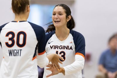 To open Saturday’s match, the two squads played to 10 ties and four different lead changes in the first set. Neither team held an advantage larger than three until Virginia closed out the set by collecting five of the last six points.