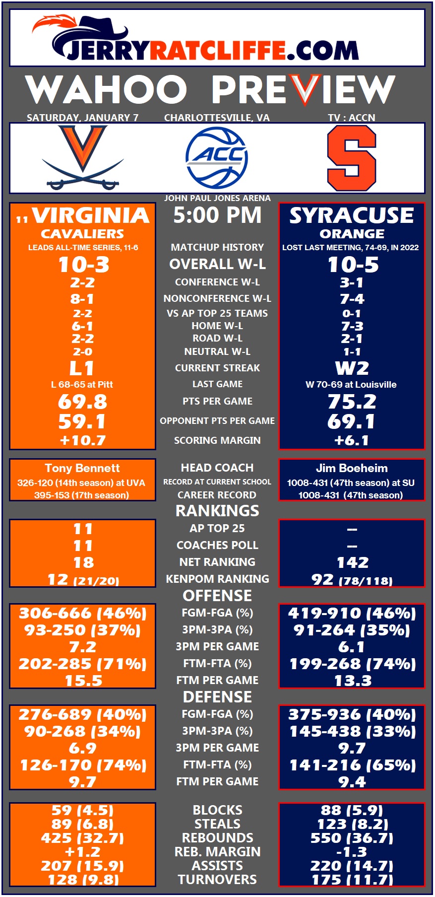 Wahoo Preview: No. 11 Virginia vs. Syracuse