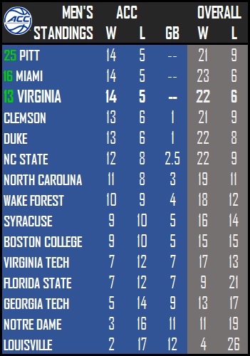 • A Virginia win vs. Louisville clinches a share of the ACC regular season title and No. 2 seed at the ACC Tournament.