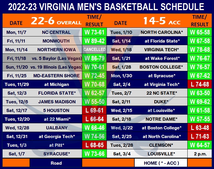 • The result solidified Virginia’s 11th 20-win season in the last 12 years under head coach Tony Bennett.