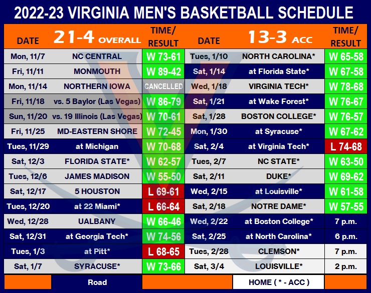 Virginia has won four games in a row, but struggled in the last two against Louisville and Notre Dame, two teams at the bottom of the conference standings, winning those two by a combined five points.