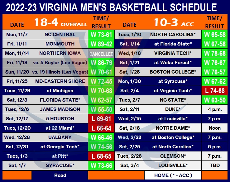 UVA (18-4, 10-3 ACC) made a point of revamping the patented Pack Line defense prior to a convincing win over No. 22 NC State on Tuesday, and held the Wolfpack’s high-scoring offense to just 50 points on 33-percent shooting.