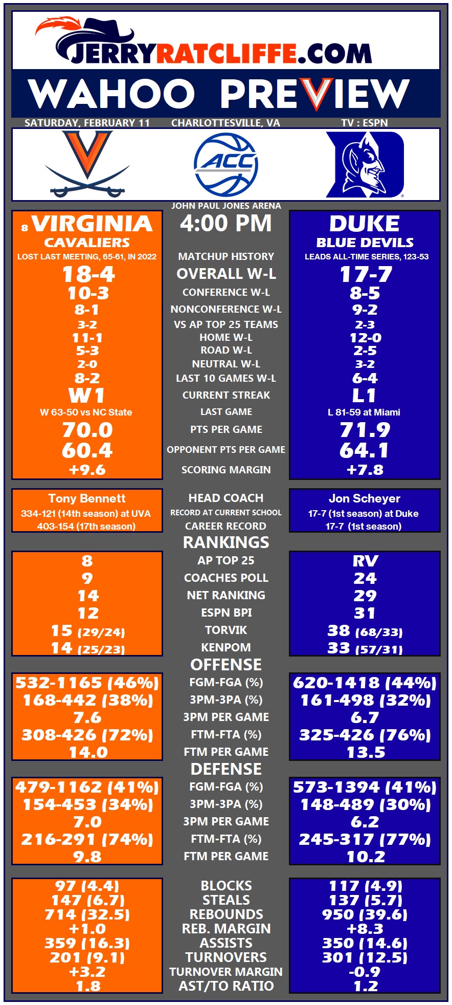 Wahoo Preview: No. 8 Virginia vs. Duke