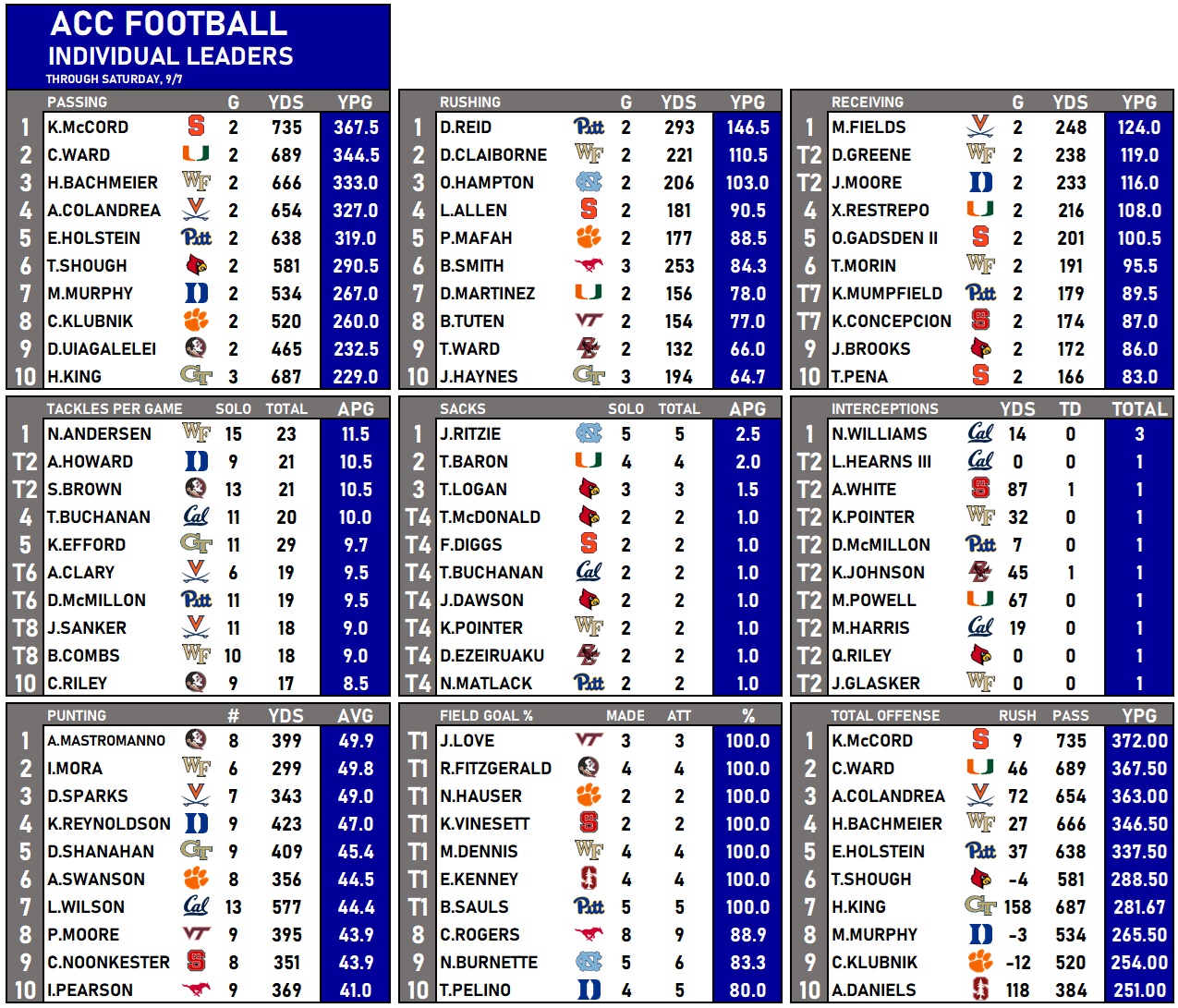 ACC Week 3 Scoreboard