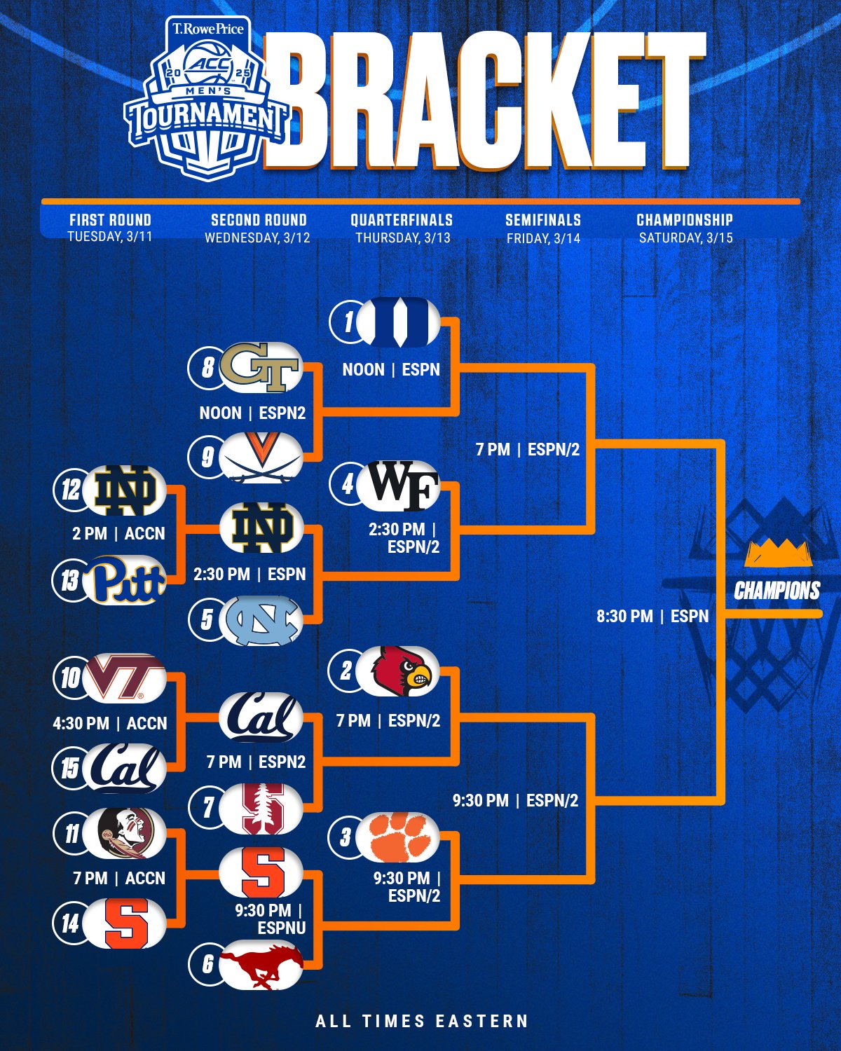 Virginia returns to the tournament in Charlotte for the first time since 2019, when it lost to FSU in the tournament semifinals before going on its miraculous NCAA run of six straight wins and the program’s only national championship. This time, though, UVA doesn’t boast a great resume. This is the Cavaliers’ lowest seed since 2010, and should they beat Georgia Tech for the 21st time in 23 meetings, No. 1 Duke lurks for the winner in Thursday’s quarterfinals.