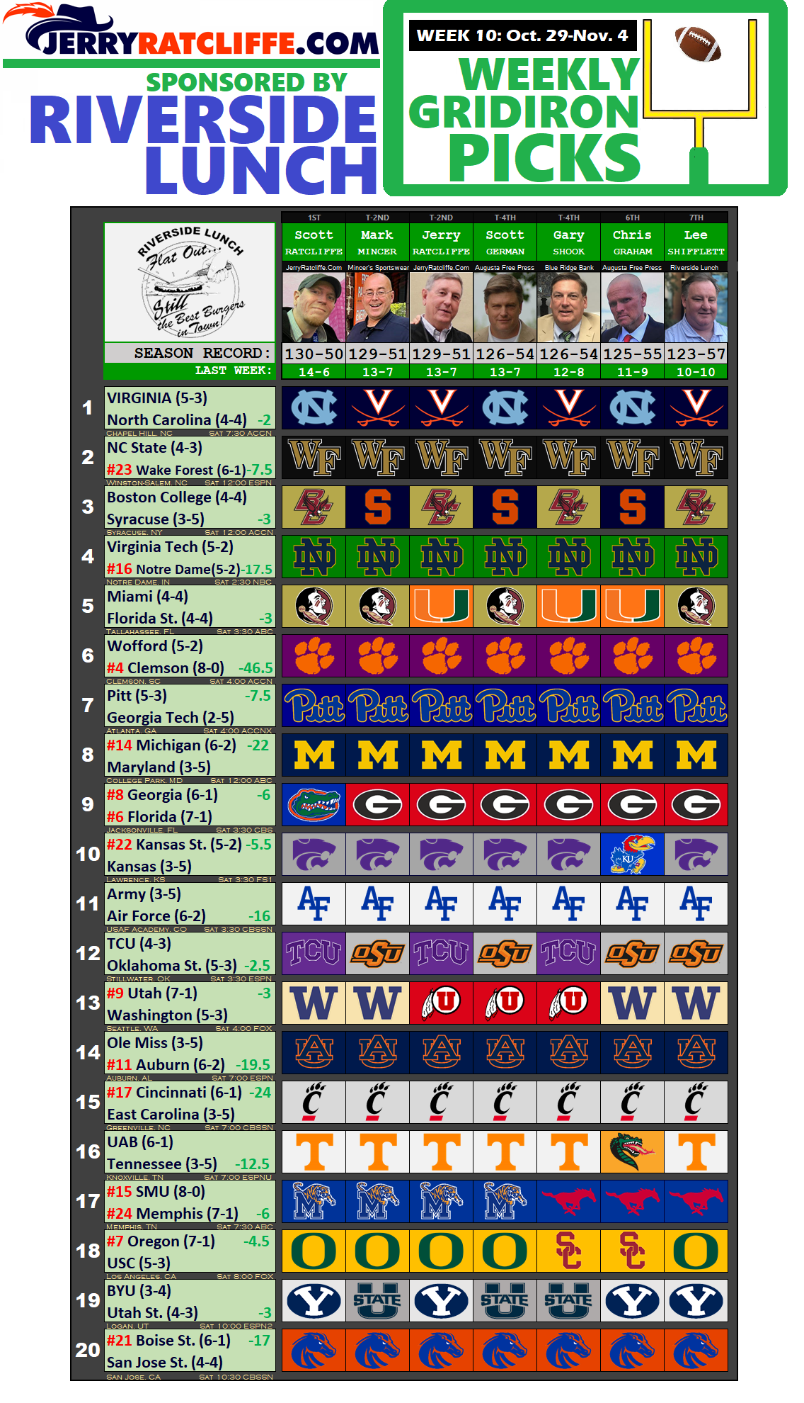 Weekly Gridiron Picks Sponsored By Riverside Lunch: Week 10