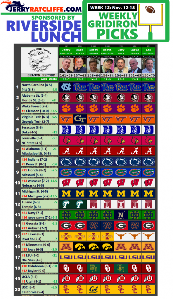 Weekly Gridiron Picks Sponsored By Riverside Lunch: Week 12