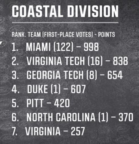 By anyone, I mean anyone as in the voter who gave North Carolina a first place vote in the Coastal Division. Really?