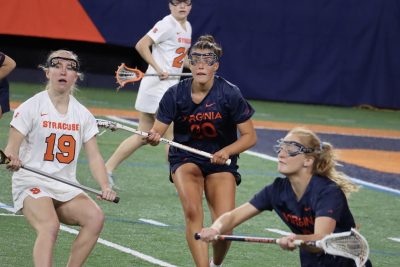 Virginia had the final possession of the game after sophomore Kate Demark caused a turnover and senior Maureen Duffy picked up the ground ball with 33 seconds remaining, but the Syracuse defense stifled Virginia’s attempt to get off a final shot and held on for the 13-12 victory.