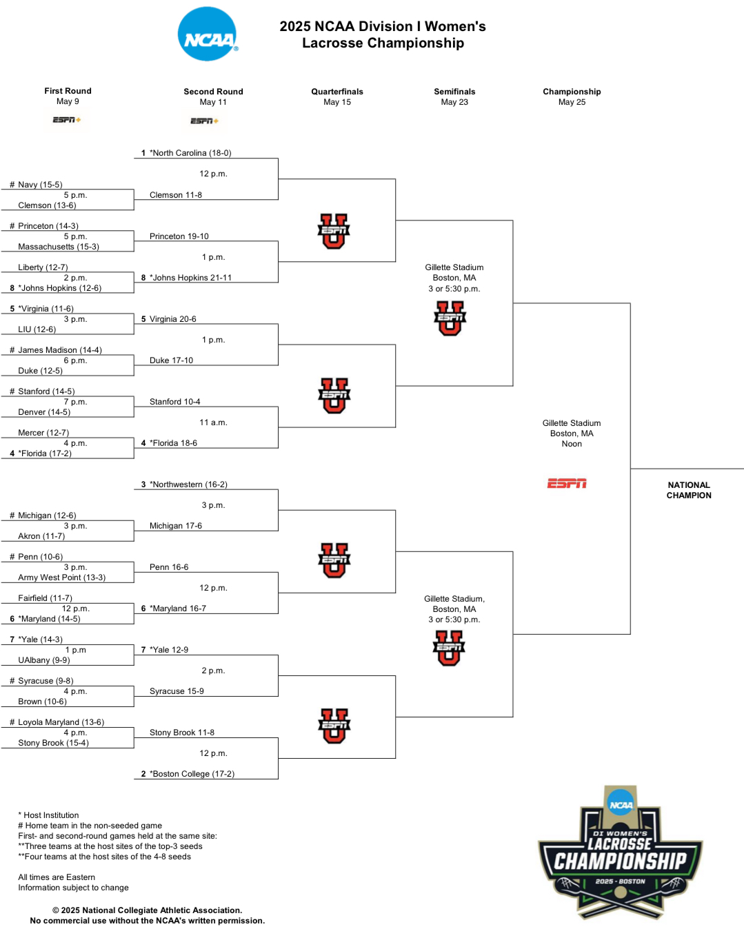 - Virginia is the No. 5 seed in the championship but is ranked No. 7 in the latest IWLCA Coaches poll. LIU (12-7) is unranked