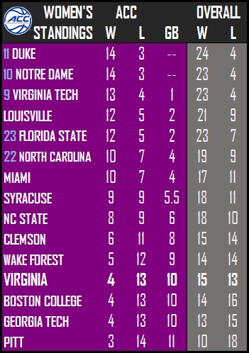 Women’s notebook: UVA closes regular season at Miami Sunday