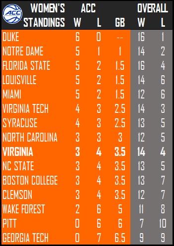 Women’s notebook: Virginia looks to get back to .500 in ACC vs. Seminoles on Thursday