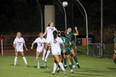 A quick strike opened the second half as Maggie Cagle found the back of the net in the 47th minute. A turnover in Virginia’s attack third gave the Hoos an opening and the ball was played to the feet of Cagle. The senior turned and drove toward the box, weaving through the defense before pulling up just at the edge of the penalty arc. Cagle drove a low shot in past the left post for the 2-0 lead over the 49ers (3-2-0).