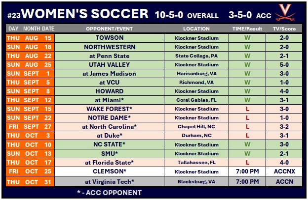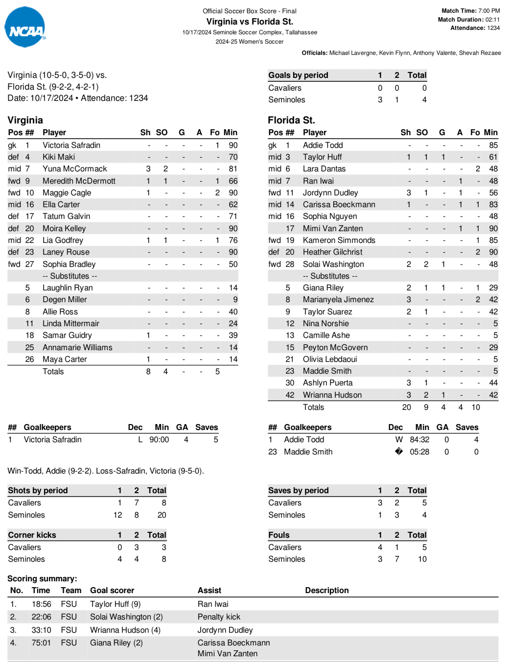 - The four FSU goals were the most the Cavaliers have conceded all season (the most since 2021 in a 4-2 loss to Penn State)