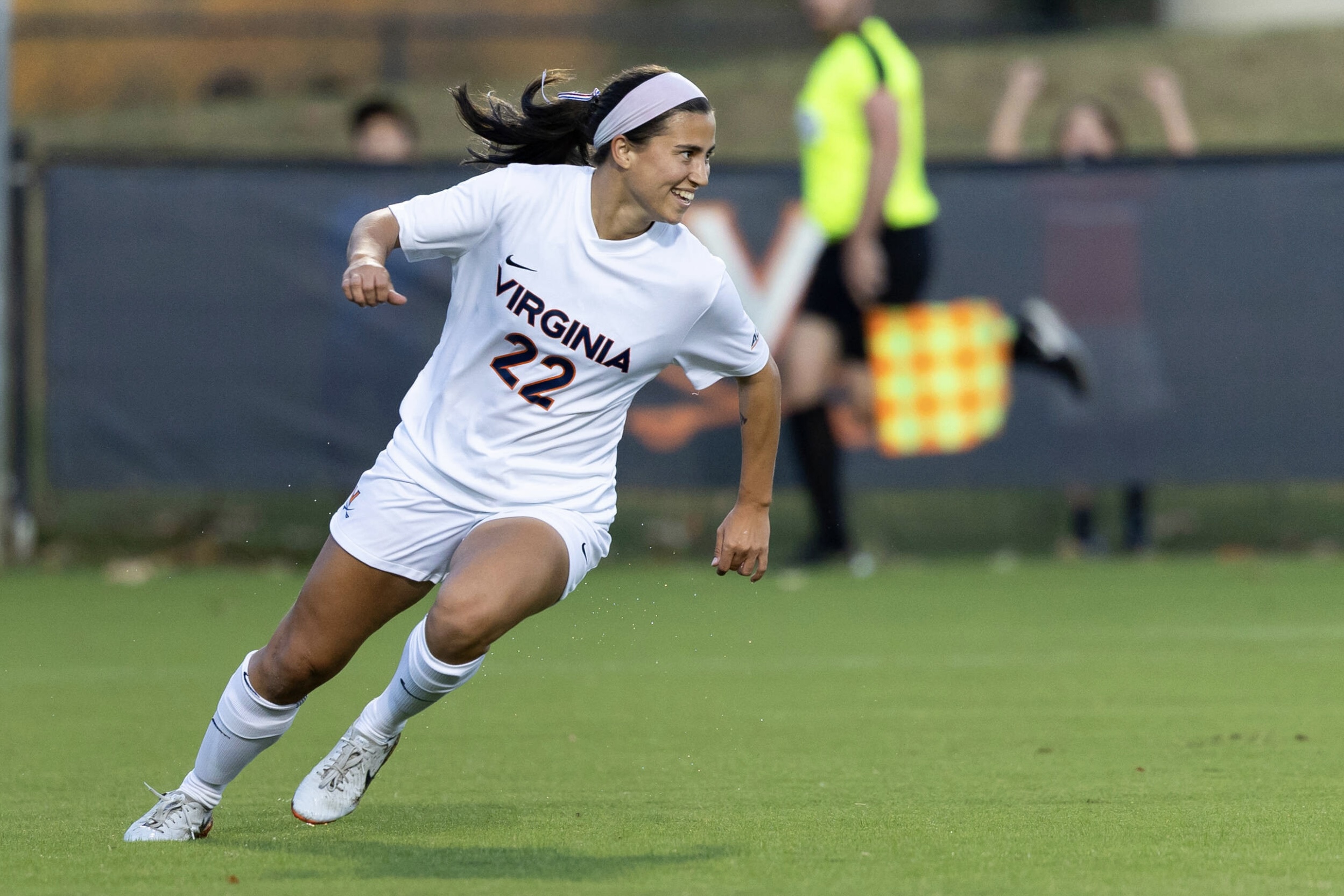 Virginia (8-0-1, 2-0-0 ACC) got on the board late in the first half with a strike from Lia Godfrey in the 37th minute. A service to midfield following a goal kick was collected by Carrie Helfrich who turned on the attack and found Allie Ross ahead on a run. She played the ball to Ross who then laid it to her left for Godfrey on her flank and Godfrey took her shot as she approached the corner of the sixth. The midfielder sent the chance in across to the back right of goal for the 1-0 lead.