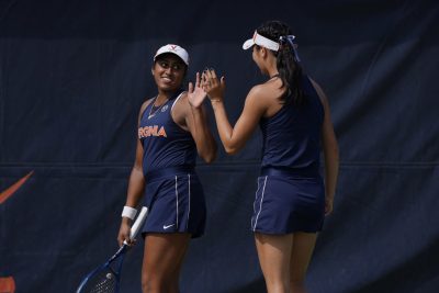 Virginia opened Saturday’s match with a pair of 6-2 wins on the second and third doubles courts. It was the 15th time in the last 19 matches that the Cavaliers jumped out to the 1-0 lead by taking the doubles point.