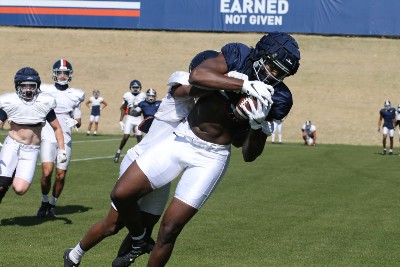Woods is much more athletic, versatile and faster. He also has great hands. One of the UVA defensive backs noted recently that he couldn’t remember Woods dropping a pass the entire training camp.