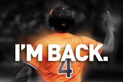 “I’m Back,” was the simple statement that accompanied a photo of the backside of Woolfolk’s No. 4 UVA baseball jersey.