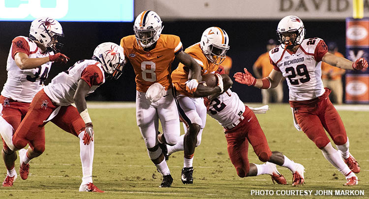 There was a lot of speculation before hand that Richmond might give Virginia a tough test considering that the Spiders stunned the Cavaliers in the 2016 season opener, which happened to be Mendenhall’s debut. However, after Perkins’ two scoring jaunts and the TD pass to Zaccheaus, it was never close.